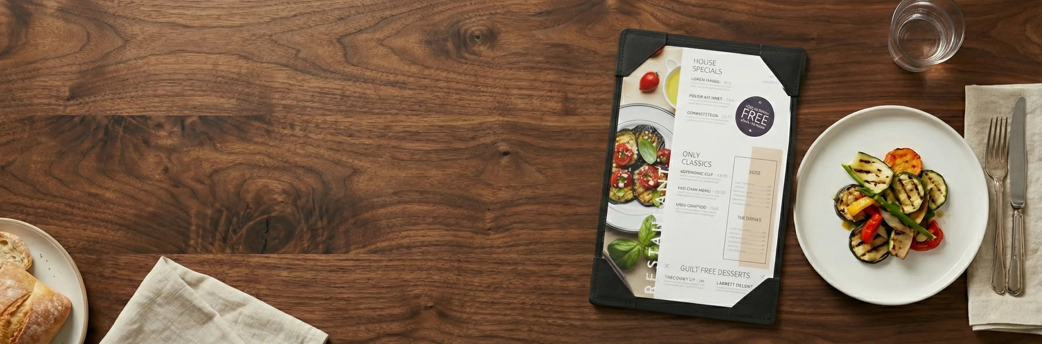 Discover our leather menu boards with corner mountings and present your offerings with thoughtful simplicity.