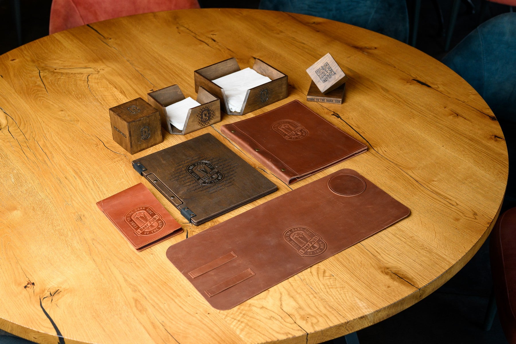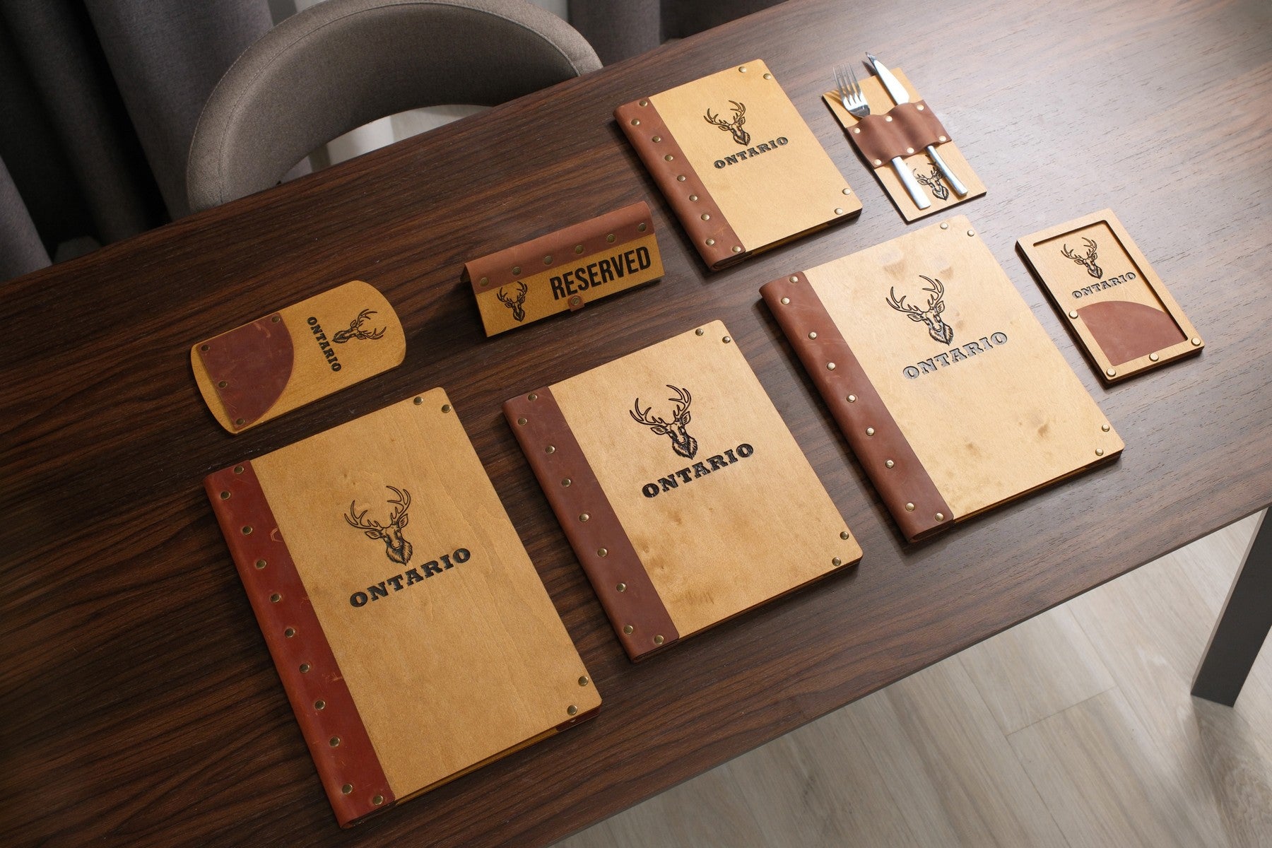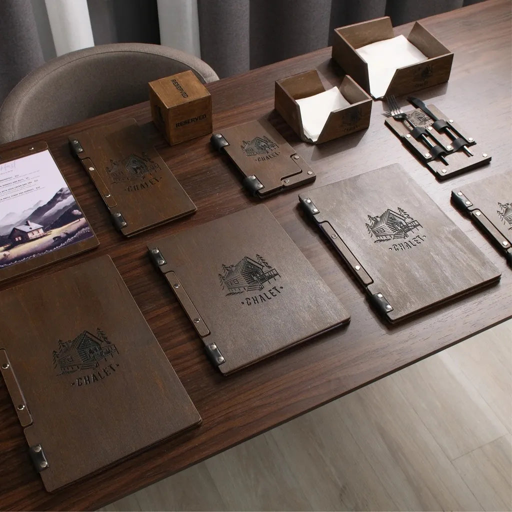 Elevate your restaurant with handcrafted wood and leather accessory sets that blend elegance with durability. Designed for upscale dining, these sets create a cohesive, stylish look while enhancing the guest experience.