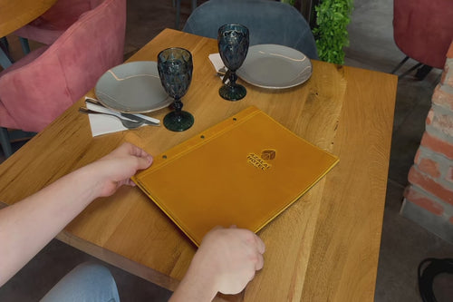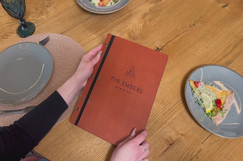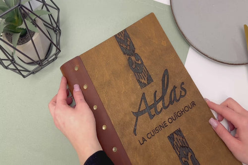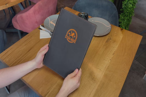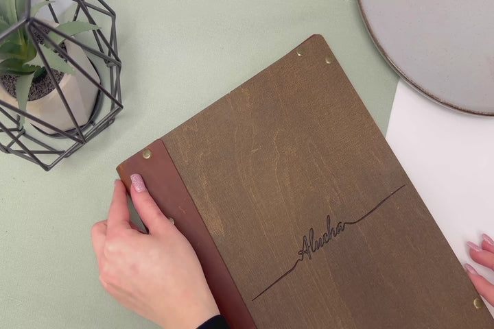 Wooden Menu Board with Crazy Horse Leather Cover (P01A4)