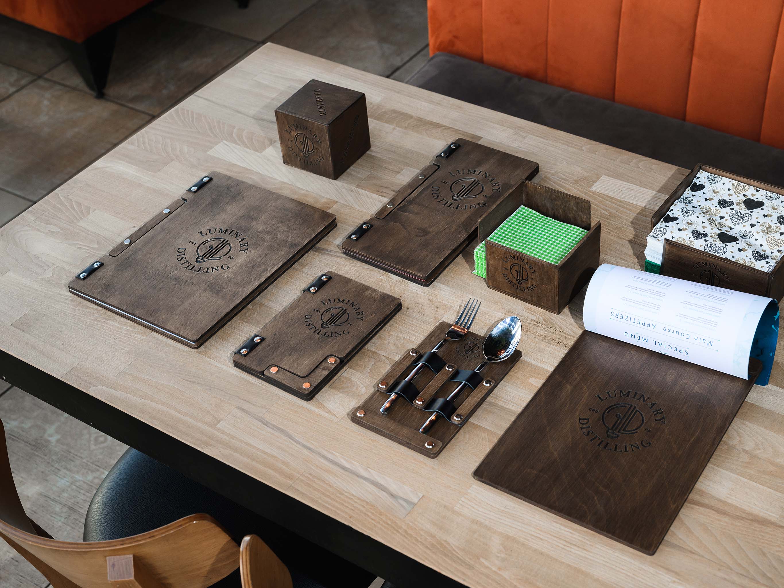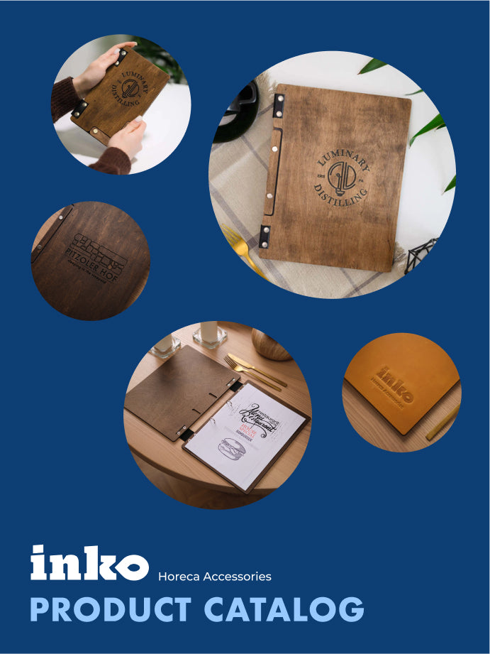 Discover our carefully crafted range of wooden and leather products, designed to enhance your restaurant's style and functionality. Our catalog offers premium solutions tailored to the hospitality industry.
