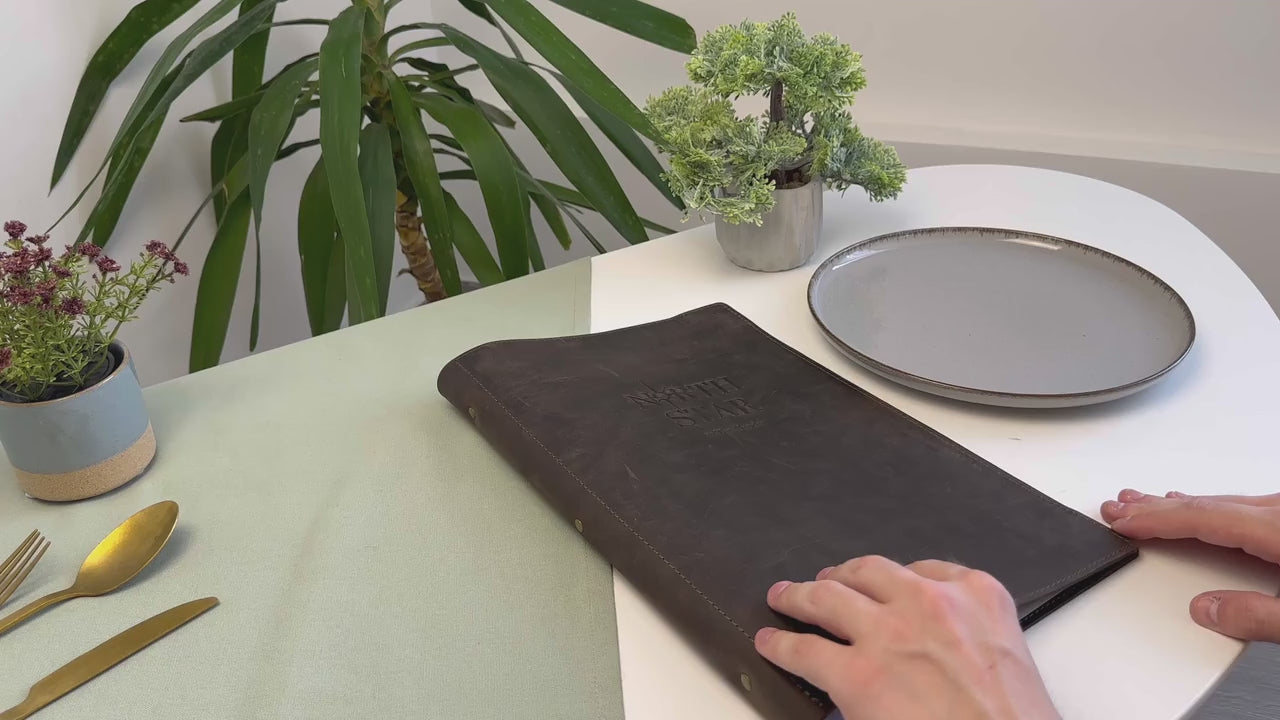 Leather Menu Folder with Brass Ring Binder and Corner Mountings suitable for US Legal Sheets (LM11A1)